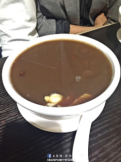 朋友之一點了芝麻糊、合桃糊、花生糊和另外兩糊五合一的甜品,名字是忘了,而朋友說如每款獨立地吃是吃得出其味道,但混在一起就不太知道自己在吃什麼,結論是不難吃但也說不上很好。